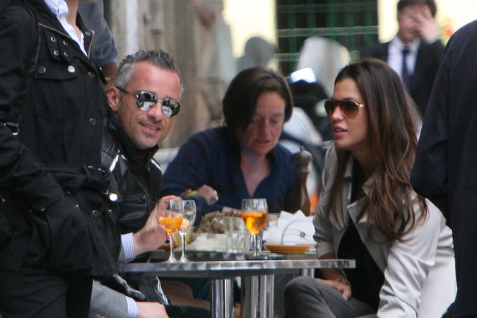 Eros Ramazzotti z dziewczyna Claudia Galanti w barze Resentin w Mediolanie