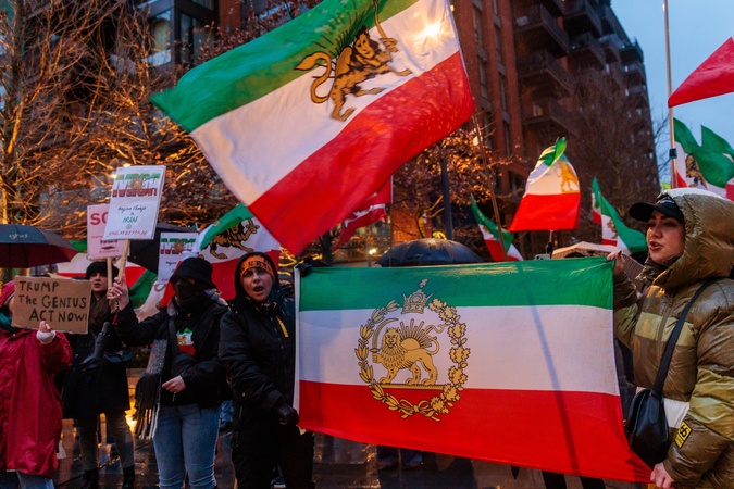 US Embassy, London, UK. 15th January 2026.An emotional crowd gather in front of the American Embassy in London calling for US President Trump to keep his promise to support Iranians in Iran amid reports of mass killings of protesters, despite the communication blackout since the Government cut internet services and phone lines in Iran on the 8th January., Credit:Photo by Amanda Rose / Avalon