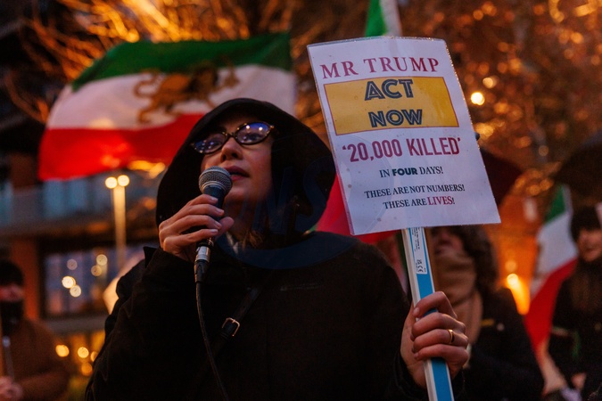 US Embassy, London, UK. 15th January 2026.An emotional crowd gather in front of the American Embassy in London calling for US President Trump to keep his promise to support Iranians in Iran amid reports of mass killings of protesters, despite the communication blackout since the Government cut internet services and phone lines in Iran on the 8th January., Credit:Photo by Amanda Rose / Avalon