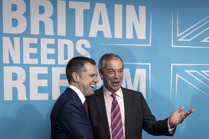 London, UK. 15th January 2026. Shadow justice secretary Robert Jenrick, pictured alongside Nigel Farage MP, formally joined Reform UK during a press conference held at the party's headquarters on Millbank, London. The announcement followed Jenrick's dismissal by Conservative Party leader Kemi Badenoch, who accused him of "plotting to defect in a way designed to be as damaging as possible” to her party., Credit:Abdullah Bailey / Avalon