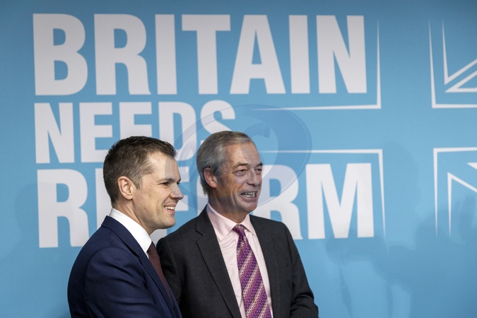 London, UK. 15th January 2026. Shadow justice secretary Robert Jenrick, pictured alongside Nigel Farage MP, formally joined Reform UK during a press conference held at the party's headquarters on Millbank, London. The announcement followed Jenrick's dismissal by Conservative Party leader Kemi Badenoch, who accused him of "plotting to defect in a way designed to be as damaging as possible” to her party., Credit:Abdullah Bailey / Avalon