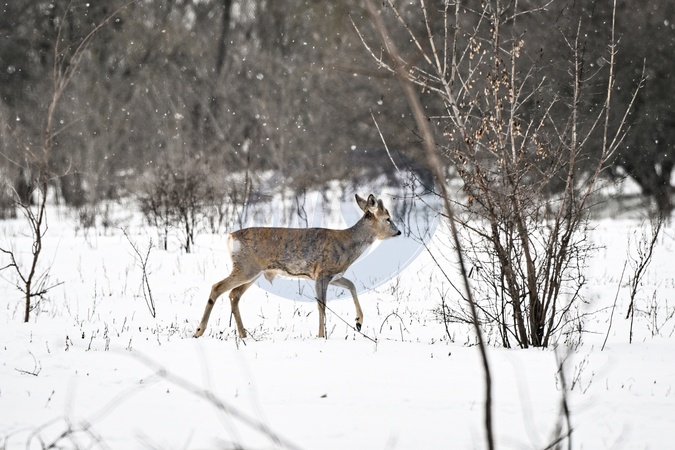 A roe deer grazes amid snow on Khortytsia Island in Zaporizhzhia, Ukraine, on January 13, 2026, Credit:Dmytro Smolienko / Avalon