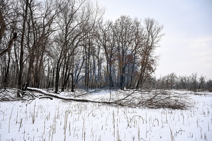 A winter scene shows a broken tree on Khortytsia Island, Zaporizhzhia, Ukraine, on January 13, 2026, Credit:Dmytro Smolienko / Avalon