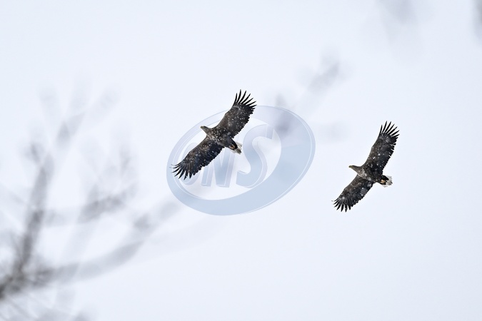 A pair of white-tailed eagles flies over Khortytsia Island in Zaporizhzhia, on January 13, 2026, Credit:Dmytro Smolienko / Avalon