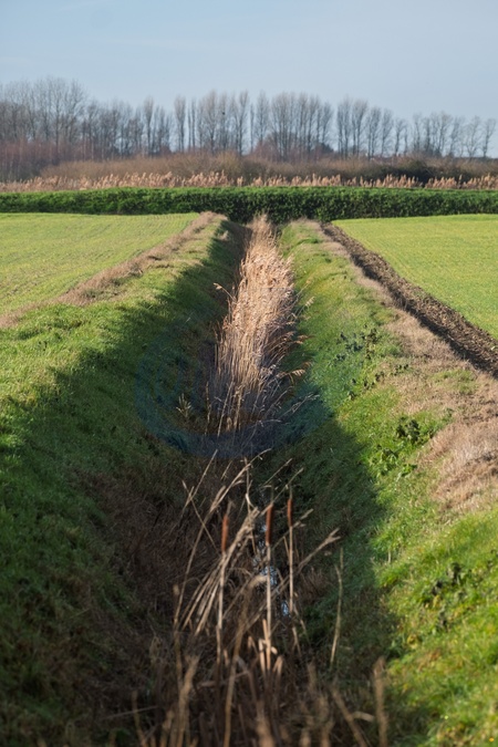 Drainage channels on fenland farms prevent flooding and create important habitats. Ely,Cambridgeshire. UK.