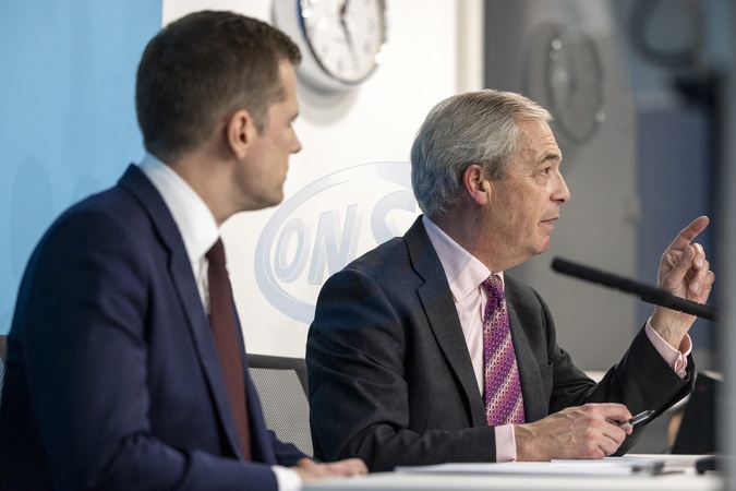 London, UK. 15th January 2026. Shadow justice secretary Robert Jenrick, pictured alongside Nigel Farage MP, formally joined Reform UK during a press conference held at the party's headquarters on Millbank, London. The announcement followed Jenrick's dismissal by Conservative Party leader Kemi Badenoch, who accused him of "plotting to defect in a way designed to be as damaging as possible” to her party., Credit:Abdullah Bailey / Avalon