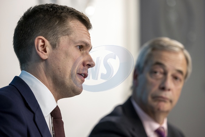 London, UK. 15th January 2026. Shadow justice secretary Robert Jenrick, pictured alongside Nigel Farage MP, formally joined Reform UK during a press conference held at the party's headquarters on Millbank, London. The announcement followed Jenrick's dismissal by Conservative Party leader Kemi Badenoch, who accused him of "plotting to defect in a way designed to be as damaging as possible” to her party., Credit:Abdullah Bailey / Avalon