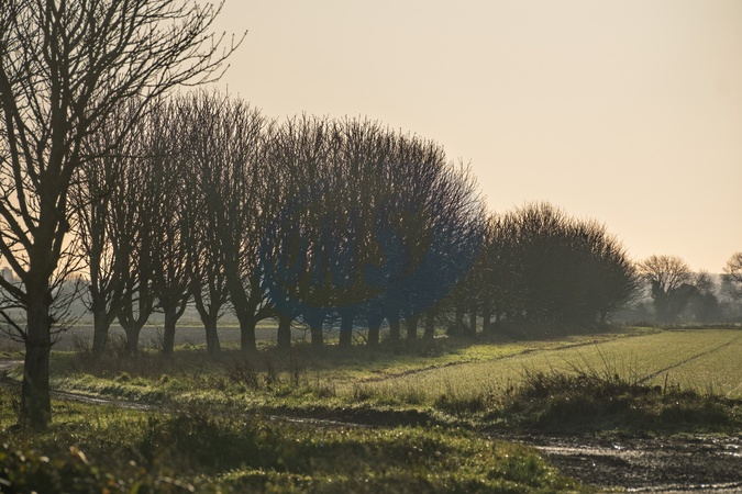 Groups of trees often mark the edges of farmers field and act as wind breaks in the fens.Ely, Cambridgeshire. United Kingdom. 14 January 2026, Credit:Mark Fairhurst / Avalon
