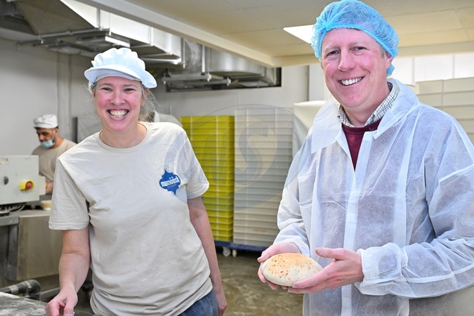 Newhaven, UK, 16 January 2026. Liberal Democrat Leader Sir Ed Davey visits Mamoosh Bakery with the Lewes MP James MacCleary, (PIC) pictured with the Founder of the Bakery Einat Chalmers at Mamoosh Bakery, Newhaven, East Sussex, UK., Credit:Lee Floyd / Avalon
