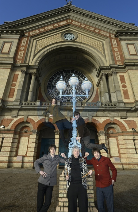 The Kinks musical Sunny Afternoon cast pose in Alexandra Palace , 16 January 2026. SUNNY AFTERNOON runs at Alexandra Palace until 31 January 2026, as part of its UK tour. Picture shows (left to right): Danny Horn (Ray Davies), Oliver Hoare (Dave Davies)., Mick Avory, Harry Curley (Peter Quaife) and Zakarie Stokes (Mick Avory), Credit:Tina Korhonen / Avalon