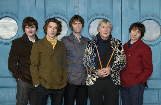 The Kinks musical Sunny Afternoon cast and Mick Avory pose for photos at Alexandra Palace , 16 January 2026. SUNNY AFTERNOON runs at Alexandra Palace until 31 January 2026, as part of its UK tour. Picture shows (left to right): Harry Curley (Peter Quaife), Oliver Hoare (Dave Davies)., Danny Horn (Ray Davies), Mick Avory and Zakarie Stokes (Mick Avory)., Credit:Tina Korhonen / Avalon