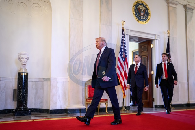 President Donald Trump enters the East Room for an event honoring the 2025 Stanley Cup champion Florida Panthers, Thursday, January 15, 2026., Credit:Molly Riley / Avalon
