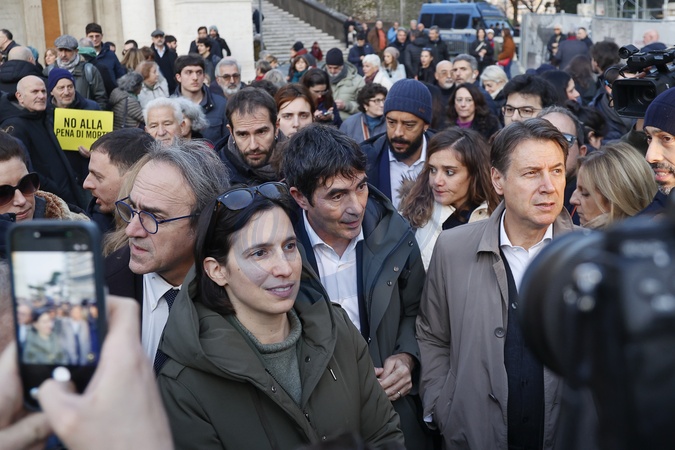 Demonstration in support of the opposition to the Iranian regime in Piazza del Campidoglio. Pictured: Elly Schlein, Angelo Bonelli, Nicola Fratoianni, and Giuseppe Conte. Rome, Italy 16 January 2026, Credit:Richard De Luca / Avalon