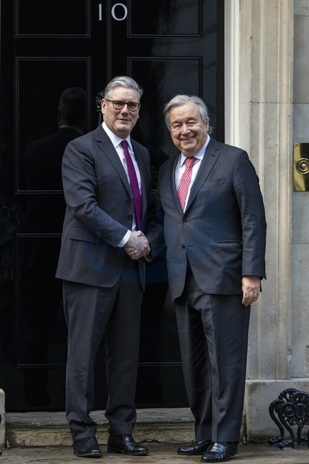 London, UK — Friday 16 January: Prime Minister Keir Starmer welcomes United Nations Secretary-General António Guterres to Downing Street for talks expected to focus on international cooperation, global security, and current geopolitical challenges., Credit:Abdullah Bailey / Avalon