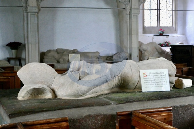 The Aldworth Giants, in the simple, tiny church of St. Mary, Aldworth there lie the historic nine stone statues of what have become known as the Aldworth Giants, a name bestowed upon them because all are over 7 feet tall and are said to be life-sized representations of the de la Beche family members. After Duke William of Normandy crossed the English Channel and took London, his supporters followed in search of lands and wealth. The de la Beche family was among them. They received numerous properties and built two castles, one of which was in Aldworth. Though the castle no longer stands, the church houses the last of the family's descendants. Though the stone monuments can still be seen today, they were vandalized during the Cromwell regime and consequently are badly mutilated, missing limbs and other appendages., Credit:Geoffrey Swaine / Avalon