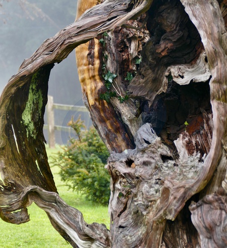 The 1000 year old Aldworth Yew tree which has been struck by lightning and blown over in a storm it is still partly alive.