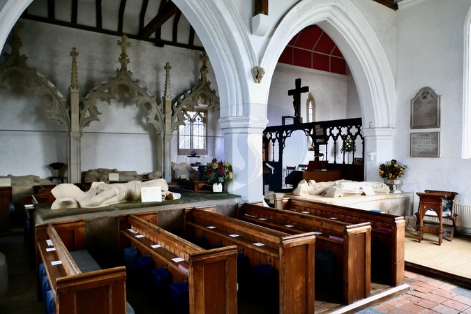 The Aldworth Giants, in the simple, tiny church of St. Mary, Aldworth there lie the historic nine stone statues of what have become known as the Aldworth Giants, a name bestowed upon them because all are over 7 feet tall and are said to be life-sized representations of the de la Beche family members. After Duke William of Normandy crossed the English Channel and took London, his supporters followed in search of lands and wealth. The de la Beche family was among them. They received numerous properties and built two castles, one of which was in Aldworth. Though the castle no longer stands, the church houses the last of the family's descendants. Though the stone monuments can still be seen today, they were vandalized during the Cromwell regime and consequently are badly mutilated, missing limbs and other appendages., Credit:Geoffrey Swaine / Avalon
