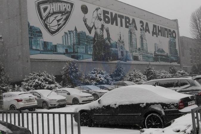 Cars are parked outside the Shynnyk Culture and Sports Complex in winter, Dnipro, Ukraine, on January 11, 2026., Credit:Mykola Miakshykov / Avalon