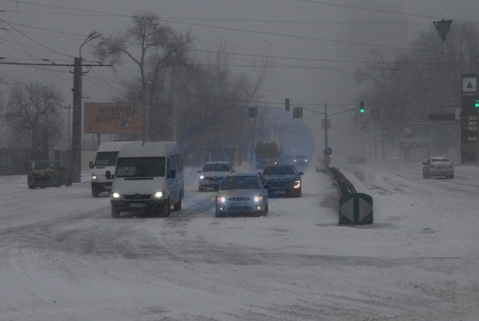 Cars drive along a snow-covered road in winter, Dnipro, Ukraine, on January 11, 2026., Credit:Mykola Miakshykov / Avalon