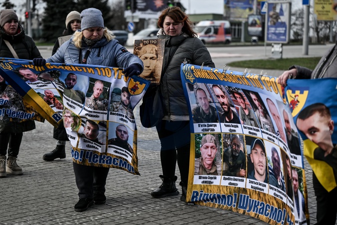 Demonstrators participate in the "Don't Be Silent! Captivity Kills!" rally to remind people about the prisoners of war from the Mariupol garrison, captive and missing defenders of Ukraine in Zaporizhzhia, Ukraine, January 10, 2026., Credit:Dmytro Smolienko / Avalon