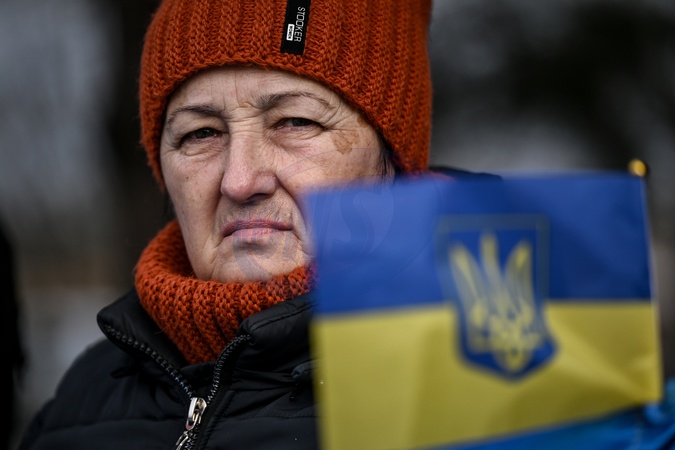 A woman stands behind a miniature Ukrainian flag with the coat of arms, known as the trident or tryzub, during the "Don't Be Silent! Captivity Kills!" rally to remind people about the prisoners of war from the Mariupol garrison, captive and missing defenders of Ukraine in Zaporizhzhia, Ukraine, January 10, 2026., Credit:Dmytro Smolienko / Avalon