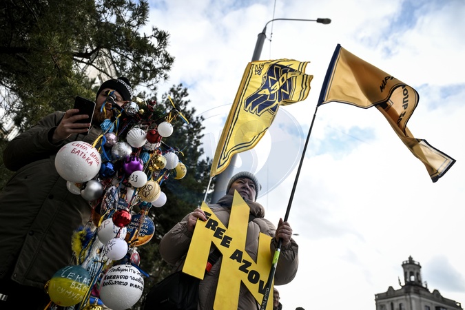 Demonstrators participate in the "Don't Be Silent! Captivity Kills!" rally to remind people about the prisoners of war from the Mariupol garrison, captive and missing defenders of Ukraine in Zaporizhzhia, Ukraine, January 10, 2026., Credit:Dmytro Smolienko / Avalon