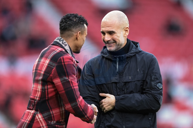 Nani, former Manchester United player shakes hands with Pep Guardiola manager of Manchester City during the Premier League match Manchester United vs Manchester City at Old Trafford, Manchester, United Kingdom, 17th January 2026, Credit:Mark Cosgrove/News Images / Avalon