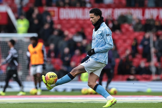 Divine Mukasa of Manchester City in the pregame warmup session during the Premier League match Manchester United vs Manchester City at Old Trafford, Manchester, United Kingdom, 17th January 2026, Credit:Mark Cosgrove/News Images / Avalon