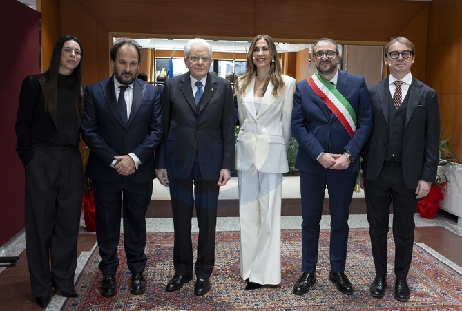 President of the Republic Sergio Mattarella at the inauguration ceremony of L'Aquila, Italian Capital of Culture 2026, with Amara, Maestro Leonardo De Amicis, Francesca Fagnani, the Mayor of L'Aquila Pierluigi Biondi, and Paride Vitale, today, January 17, 2026. L'Aquila, Italy 17 January 2026, Credit:Paul Giandotti / Avalon