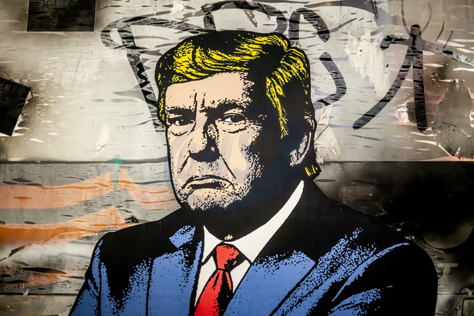 Republic Square, a new work by aleXsandro Palombo, near the U.S. Consulate General, titled MIGA – Make Iran Great Again. The mural depicts Donald Trump sitting on a tombstone with the inscription "Rip Khamenei," a gesture of support for the uprisings in Iran, amid widespread protests and numerous civilian casualties linked to the repression of the regime led by Ayatollah Ali Khamenei. Milan, Italy 16 January 2026, Credit:Nicola Marfisi / Avalon