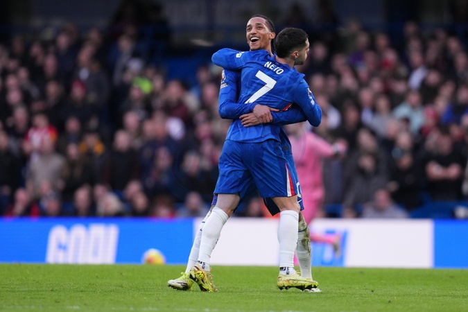 Joao Pedro of Chelsea and Pedro Neto of Chelsea celebrate 1-0 lead during the Premier League match Chelsea vs Brentford at Stamford Bridge, London, United Kingdom, 17th January 2026, Credit:Harvey Murphy/News Images / Avalon