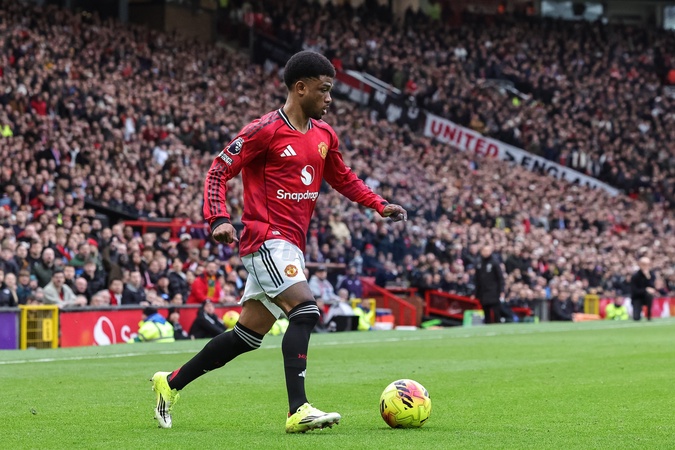 Amad Diallo of Manchester United breaks with the ball during the Premier League match Manchester United vs Manchester City at Old Trafford, Manchester, United Kingdom, 17th January 2026, Credit:Mark Cosgrove/News Images / Avalon