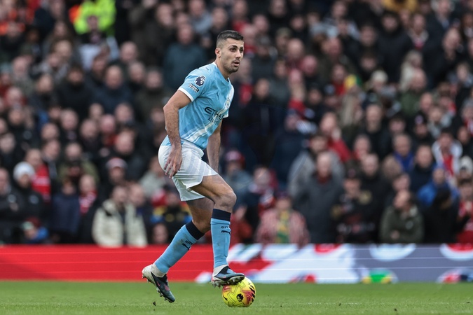 Rodrigo of Manchester City controls the ball during the Premier League match Manchester United vs Manchester City at Old Trafford, Manchester, United Kingdom, 17th January 2026, Credit:Mark Cosgrove/News Images / Avalon