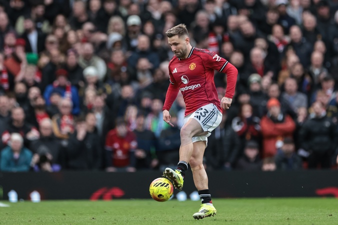 Luke Shaw of Manchester United controls the ball during the Premier League match Manchester United vs Manchester City at Old Trafford, Manchester, United Kingdom, 17th January 2026, Credit:Mark Cosgrove/News Images / Avalon