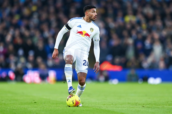 James Justin of Leeds United controls the ball during the Premier League match Leeds United vs Fulham at Elland Road, Leeds, United Kingdom, 17th January 2026, Credit:Jorge Horsted/News Images / Avalon