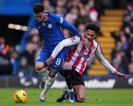 Enzo Fernández of Chelsea and Kevin Schade of Brentford battle in the penalty area during the Premier League match Chelsea vs Brentford at Stamford Bridge, London, United Kingdom, 17th January 2026, Credit:Harvey Murphy/News Images / Avalon