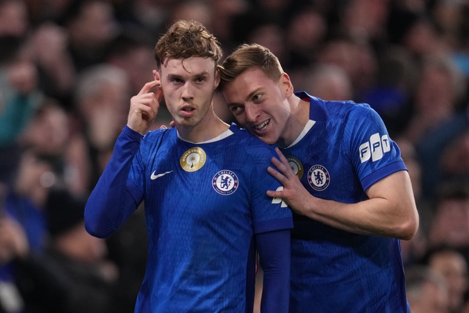 Liam Delap of Chelsea celebrates Cole Palmer of Chelsea goal during the Premier League match Chelsea vs Brentford at Stamford Bridge, London, United Kingdom, 17th January 2026, Credit:Harvey Murphy/News Images / Avalon