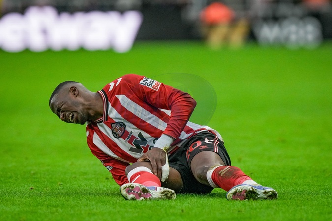 Nordi Mukiele of Sunderland lies on the ground injured during the Premier League match Sunderland vs Crystal Palace at Stadium Of Light, Sunderland, United Kingdom, 17th January 2026, Credit:Maynard Manyowa/News Images / Avalon