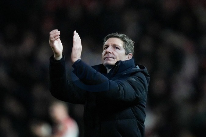 Crystal Palace manager Oliver Glasner applauds the fans after the final whistle during the Premier League match Sunderland vs Crystal Palace at Stadium Of Light, Sunderland, United Kingdom, 17th January 2026, Credit:Maynard Manyowa/News Images / Avalon
