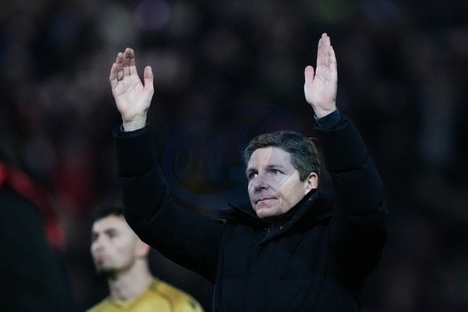 Crystal Palace manager Oliver Glasner applauds the fans after the final whistle during the Premier League match Sunderland vs Crystal Palace at Stadium Of Light, Sunderland, United Kingdom, 17th January 2026, Credit:Maynard Manyowa/News Images / Avalon