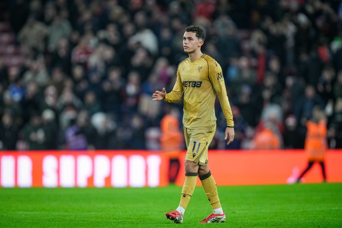 Brennan Johnson of Crystal Palace walks over dejected to travelling fans to applaud them at full time during the Premier League match Sunderland vs Crystal Palace at Stadium Of Light, Sunderland, United Kingdom, 17th January 2026, Credit:Maynard Manyowa/News Images / Avalon