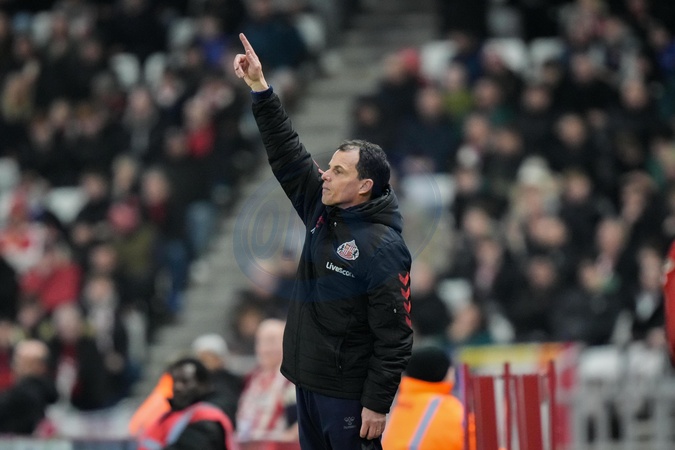 Regis Le Bris manager of Sunderland gives his team instructions during the Premier League match Sunderland vs Crystal Palace at Stadium Of Light, Sunderland, United Kingdom, 17th January 2026, Credit:Maynard Manyowa/News Images / Avalon