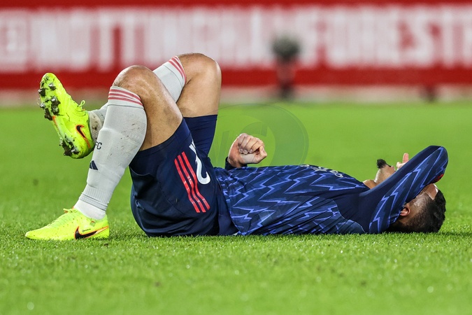 William Saliba of Arsenal takes a knock during the Premier League match Nottingham Forest vs Arsenal at City Ground, Nottingham, United Kingdom, 17th January 2026, Credit:Ae Cosgrove/News Images / Avalon