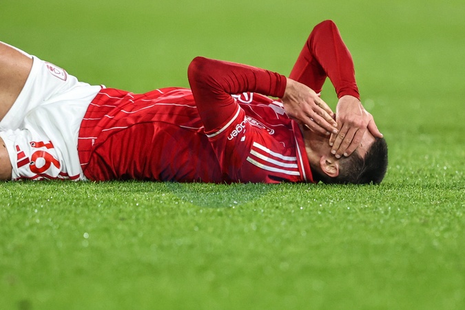 Nicolas Dominguez of Nottingham Forest takes a knock during the Premier League match Nottingham Forest vs Arsenal at City Ground, Nottingham, United Kingdom, 17th January 2026, Credit:Ae Cosgrove/News Images / Avalon