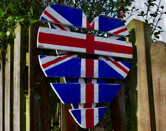 A heart painted with a Union Jack decorates a gate in a rural village., Credit:Geoffrey Swaine / Avalon