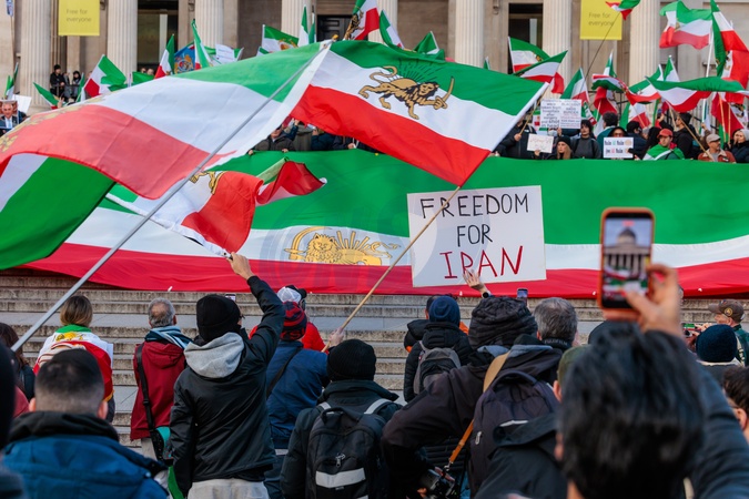 Trafalgar Square, London, UK. 17th January 2026.Thousands of Iranians and supporters lead the march from Trafalgar Square to the Iranian Embassy in protest of the mass killings of unarmed protesters in Iran. The now worldwide protests are calling for the end of the Islamic Republic and return of exiled Crown Prince Reza Pahlavi, the last Shah's eldest son., Credit:Photo by Amanda Rose / Avalon