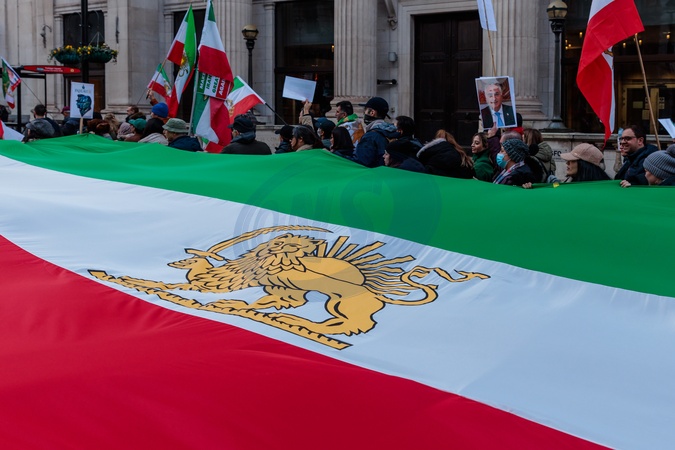Trafalgar Square, London, UK. 17th January 2026.Thousands of Iranians and supporters lead the march from Trafalgar Square to the Iranian Embassy in protest of the mass killings of unarmed protesters in Iran. The now worldwide protests are calling for the end of the Islamic Republic and return of exiled Crown Prince Reza Pahlavi, the last Shah's eldest son., Credit:Photo by Amanda Rose / Avalon