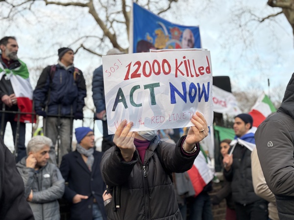 Iranian opposition supporters protest outside Iranian Embassy in London
