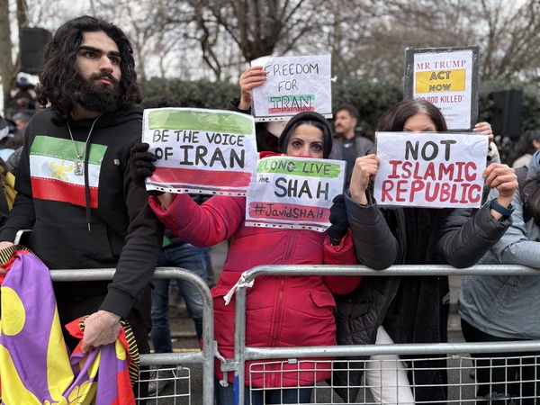 Iranian opposition supporters protest outside Iranian Embassy in London