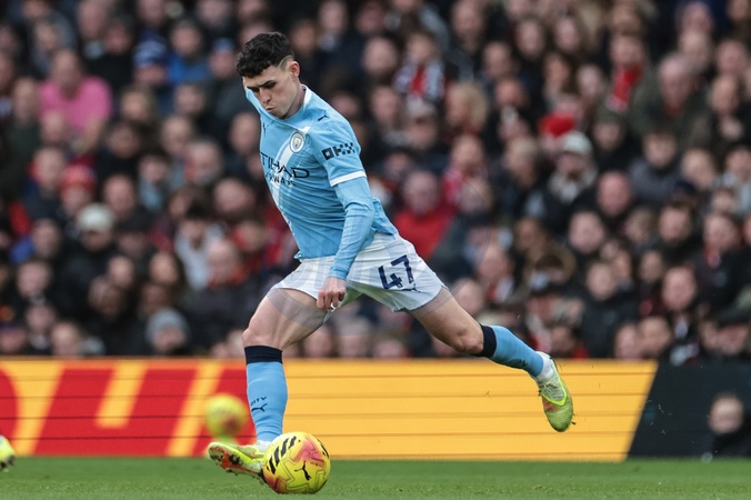 Phil Foden of Manchester City with the ball during the Premier League match Manchester United vs Manchester City at Old Trafford, Manchester, United Kingdom, 17th January 2026, Credit:Mark Cosgrove/News Images / Avalon